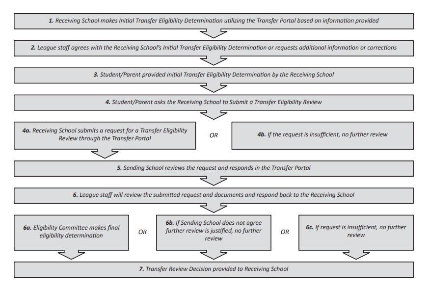 School Administrators Review—When the six transfer eligibility review exceptions above are not applicable, the Receiving School Principal and Activities Director and the Sending School Principal and Activities Director together may submit a written request to the MSHSL that circumstances exist which warrant a review of varsity eligibility by the MSHSL. The school administrators must identify the circumstances that exist and submit information and documentation to support their request for review of varsity eligibility. This transfer eligibility review exception is applicable only for students who transfer from one MSHSL member school to another MSHSL member school.